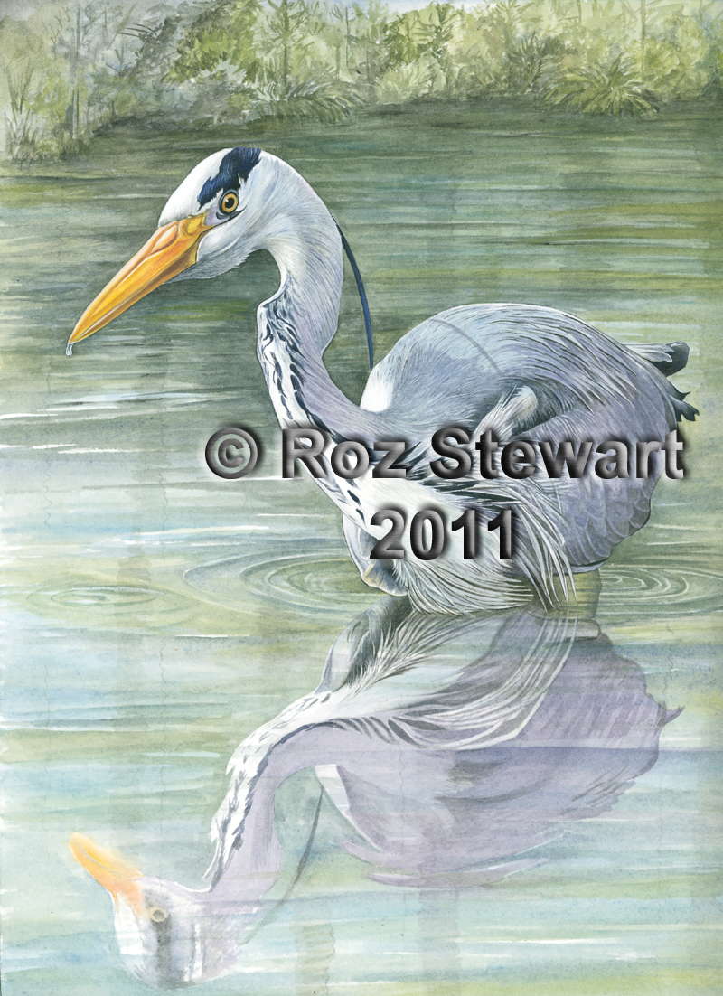 The Heron can be found at the waters edge, in both salt and fresh water. One can often be seen flying low folowing the small stream that runs behind Rozi's house.
