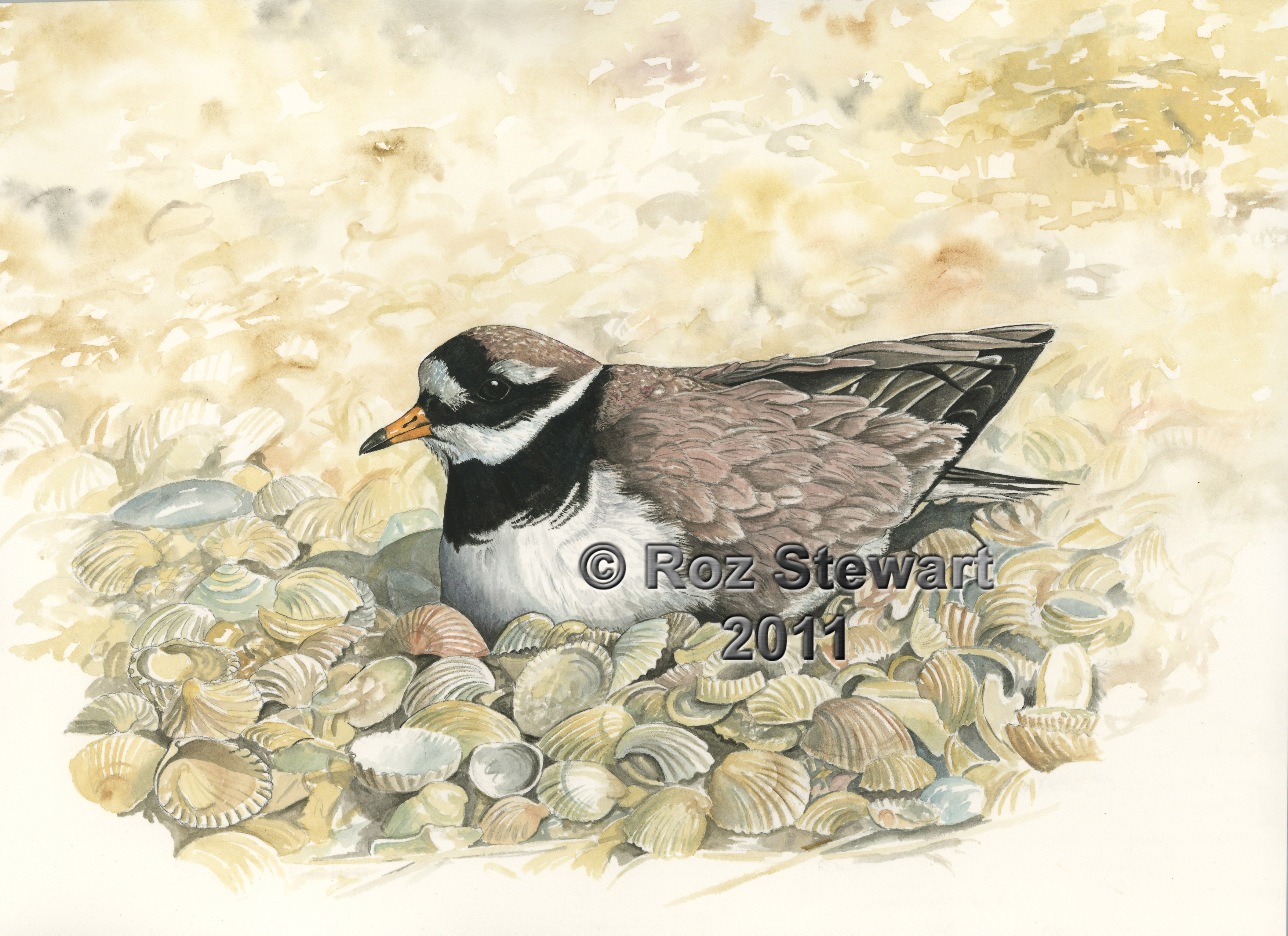 The Ringed Plover is to be seen scuttling along the shoreline. This one has made its nest on shingle.