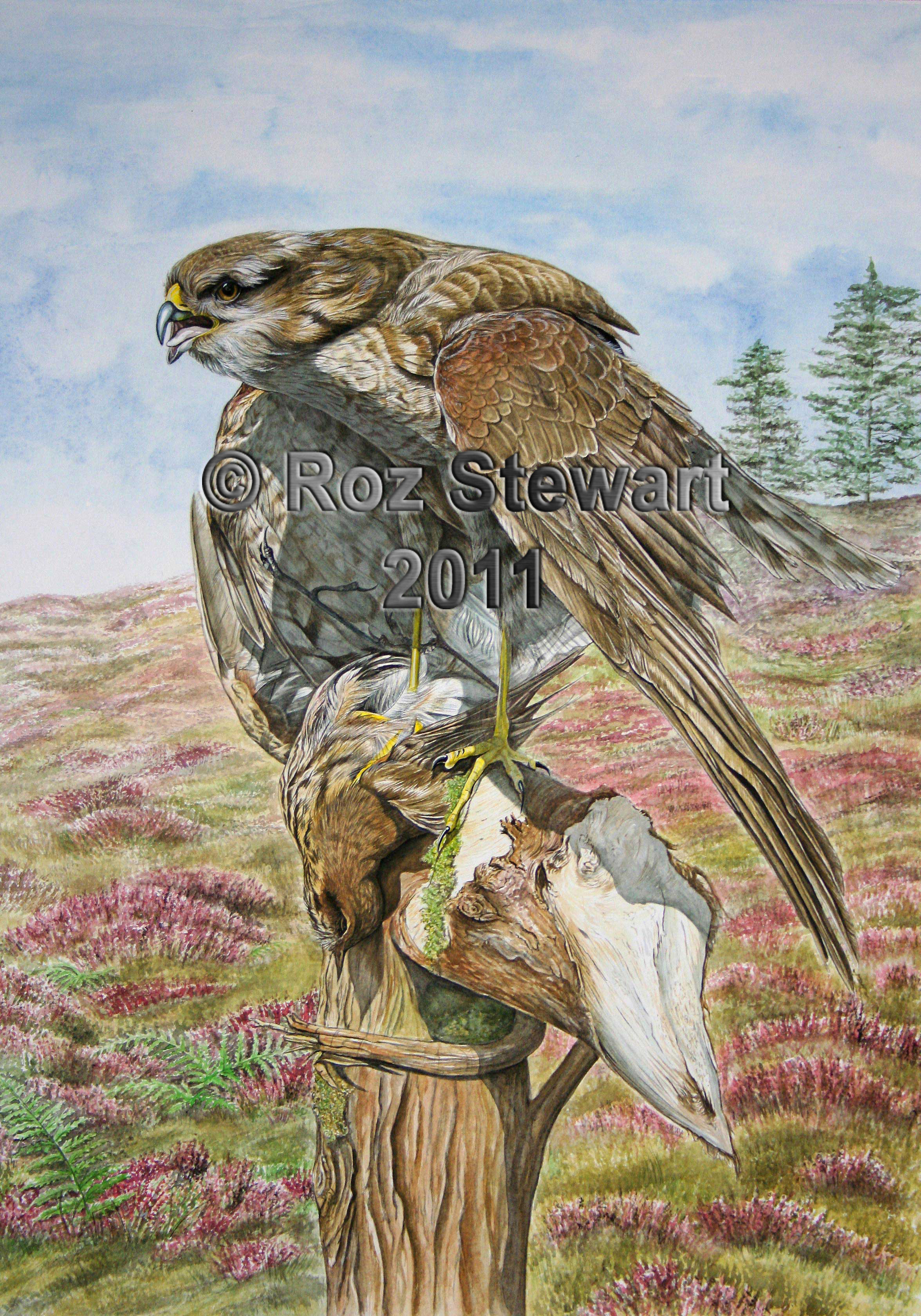 This bird of prey is usually seen swooping after smaller birds like the redwing, its main diet. This study is from a mounted bird, with its prey, both having met their end by flying into a neighbours window in full flight.